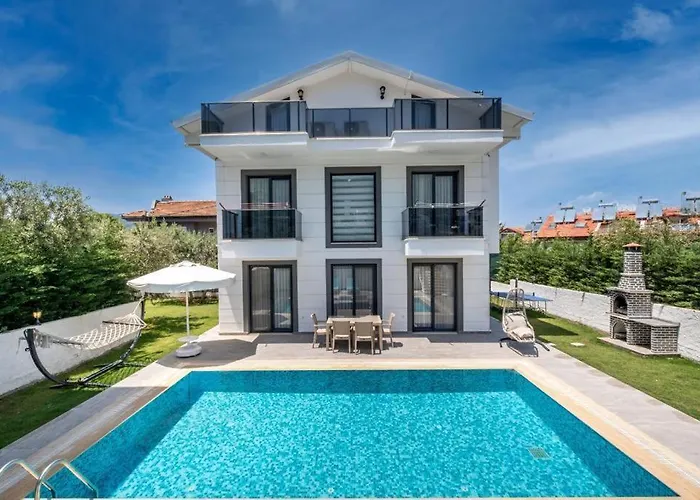 Villa Asrin靠近Fethiye Motor Kiralama,设有配游泳池的露台. 别墅地理位置优越,距离Oludeniz海滩3.1公里,距离2.阿敏塔斯之墓6公里.